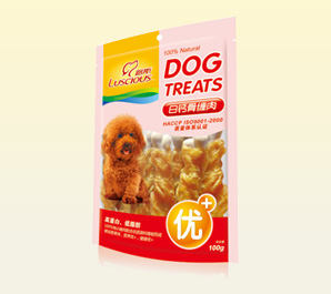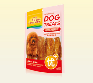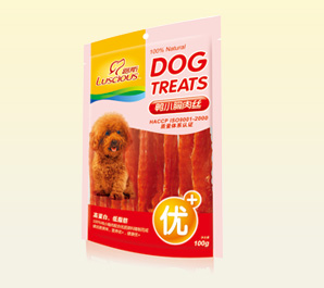 产品名称:软小胸肉丝 规格型号:100g、200g、400g三种包装 每箱数量:100袋 公司网址:www.luspet...